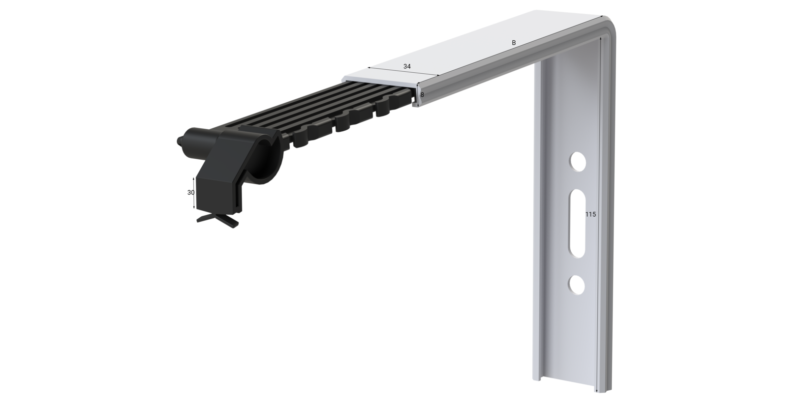 Gleitabschluss A 500 V/24, Variante Standard, Oberfläche Alu blank, Ausrichtung rechts, Ansicht aussen, Ausladung 110 mm