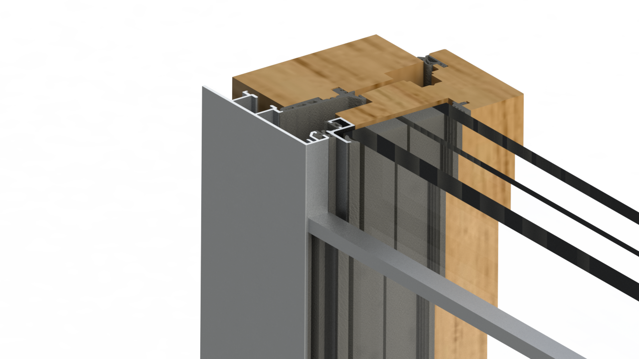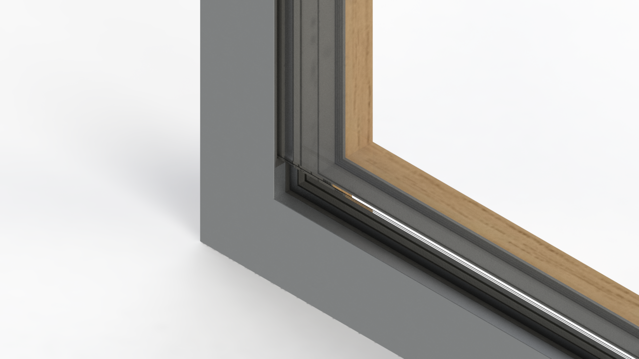 Die Verglasung der Integralflügel kann wahlweise mit zugeschnittenen Aluminiumprofilen oder mit werkseitig vorgefertigten Aluminiumrahmen erfolgen. Das Aluminium-Flügelprofil wirkt zusätzlich tragend auf die Glasscheibe und muss daher in den Verklotzungsbereichen auf den Verglasungsklötzen aufliegen. In unserem Zubehör für Holz-Aluminium-Systeme erhalten Sie dafür anpassbare Glasauflager.