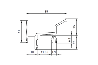 The GTR 19.45 K rain protection rail is a large-capacity rail with a transom cover, designed for a rebate width of 19 millimetres and available with thermal break. The rail is installed by hammering it into place. The product range includes precision-fit end caps to seal the construction securely. For details of the visual design, please refer to the construction drawing in the download section.
