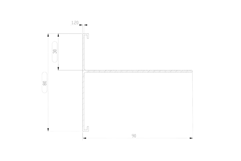 Note: The cover heights 60-125 mm have a row of screw holes in the mounting leg. The cover heights 150-200 mm have two rows of screw holes in the mounting leg.