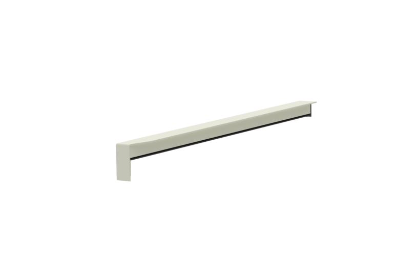Decoupled, two-part sliding closure A 500 V/34 for plaster and ETICS facades with compensation of thermal length variation of +2 mm/-2 mm. Provision for integration of a roller shutter guide rail. Water tightness under heavy rain tested up to 1,950 Pa. Component of the BUG System 500 window sill system tested for water tightness under heavy rain. Material: aluminium and special plastic. Plaster edge (width): 34 mm. Drip edge: 30 mm.