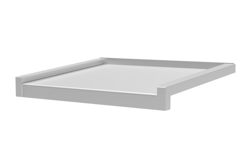 Decoupled, two-part sliding closure A 500 V/34 for plaster and ETICS facades with compensation of thermal length variation of +2 mm/-2 mm. Provision for integration of a roller shutter guide rail. Water tightness under heavy rain tested up to 1,950 Pa. Component of the BUG System 500 window sill system tested for water tightness under heavy rain. Material: aluminium and special plastic. Plaster edge (width): 34 mm. Drip edge: 40 mm.