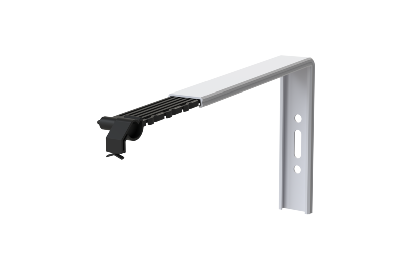 The HS 500 bracket system is suitable for brick, plaster and ETICS facades and offers various window sill brackets for different applications. The HS 500 window sill bracket has a continuously adjustable slide-in element with a clip articulated head. Flexibly adjustable bracket system for on-site adjustment on the building. This holder is used for ETICS facades or metal curtain facades. The system stabilises the window sill and keeps it in place. Component of the BUG System 500 window sill system tested for water tightness under heavy rain. Material: special plastic and aluminium with a material thickness of 1.6 mm.