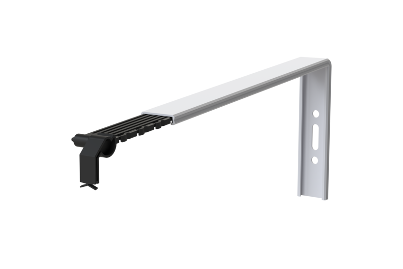 The HS 500 bracket system is suitable for brick, plaster and ETICS facades and offers various window sill brackets for different applications. The HS 500 window sill bracket has a continuously adjustable slide-in element with a clip articulated head. Flexibly adjustable bracket system for on-site adjustment on the building. This holder is used for ETICS facades or metal curtain facades. The system stabilises the window sill and keeps it in place. Component of the BUG System 500 window sill system tested for water tightness under heavy rain. Material: special plastic and aluminium with a material thickness of 1.6 mm.