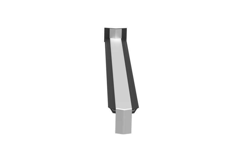 A 500 D/135 external corner connector for secure connection of window sill butts on external corners at an angle of 135°. Water tightness under heavy rain tested up to 1,950 Pa. Compensation of thermal length variation +3 mm/-3 mm. With a spring-based design, expansion compensation is +4 mm/-4 mm. Component of the BUG System 500 window sill system tested for water tightness under heavy rain. Material: aluminium and corner-vulcanised EPDM seal.