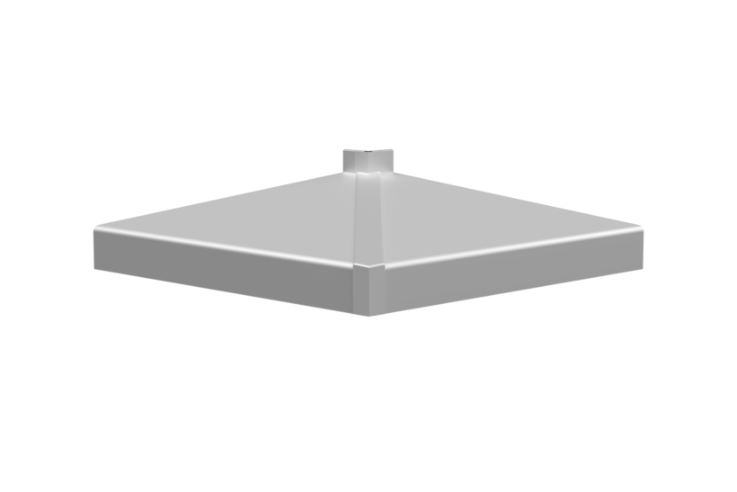 A 500 D/90 external corner connector for secure connection of window sill butts on external corners at an angle of 90°. Water tightness under heavy rain tested up to 1,950 Pa. Compensation of thermal length variation +3 mm/-3 mm. With a spring-based design, expansion compensation is +4 mm/-4 mm. Component of the BUG System 500 window sill system tested for water tightness under heavy rain. Material: aluminium and corner-vulcanised EPDM seal.
