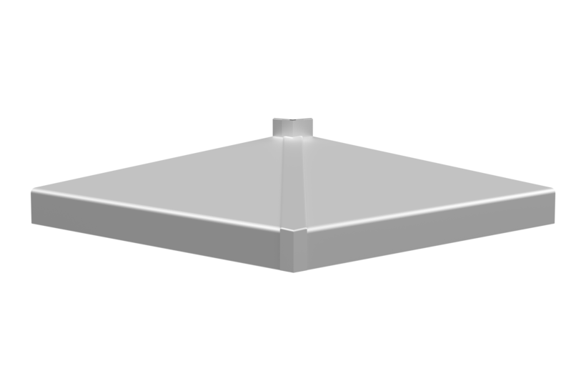 A 500 D/90 external corner connector for secure connection of window sill butts on external corners at an angle of 90°. Water tightness under heavy rain tested up to 1,950 Pa. Compensation of thermal length variation +3 mm/-3 mm. With a spring-based design, expansion compensation is +4 mm/-4 mm. Component of the BUG System 500 window sill system tested for water tightness under heavy rain. Material: aluminium and corner-vulcanised EPDM seal.