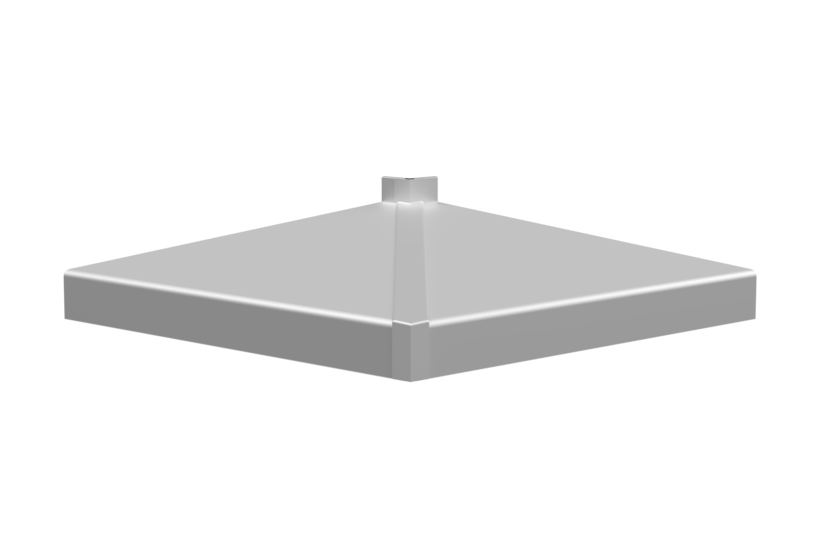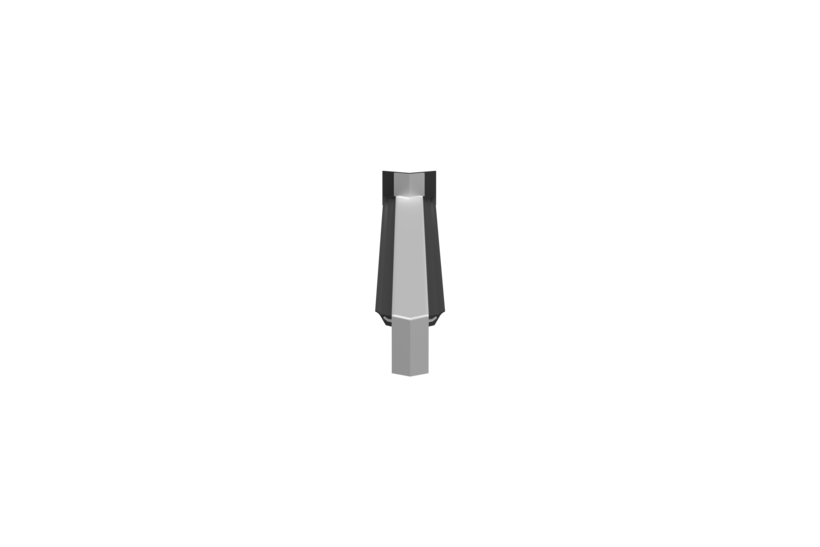 A 500 D/90 external corner connector for secure connection of window sill butts on external corners at an angle of 90°. Water tightness under heavy rain tested up to 1,950 Pa. Compensation of thermal length variation +3 mm/-3 mm. With a spring-based design, expansion compensation is +4 mm/-4 mm. Component of the BUG System 500 window sill system tested for water tightness under heavy rain. Material: aluminium and corner-vulcanised EPDM seal.