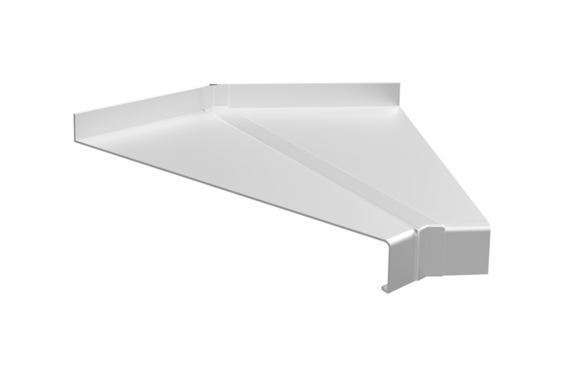 I 500 D/135 internal corner connector for secure connection of window sill butts on internal corners at an angle of 135°. Water tightness under heavy rain tested up to 1,950 Pa. Compensation of thermal length variation +3 mm/-3 mm. With a spring-based design, expansion compensation is +4 mm/-4 mm. Component of the BUG System 500 window sill system tested for water tightness under heavy rain. Material: aluminium and corner-vulcanised EPDM seal.
