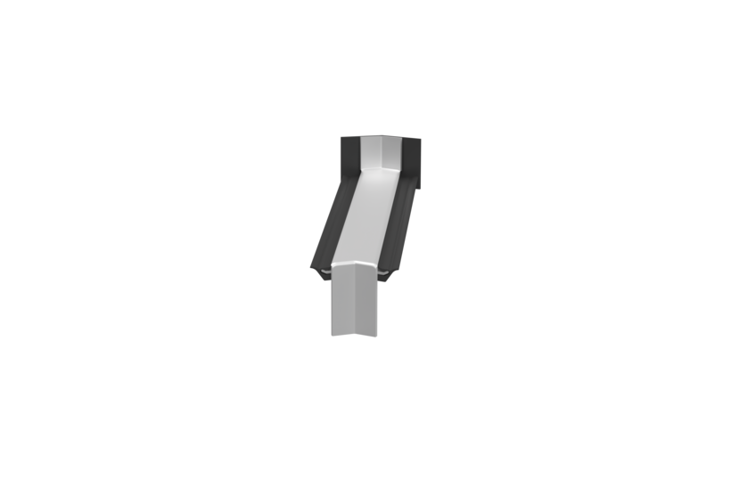 I 500 D/135 internal corner connector for secure connection of window sill butts on internal corners at an angle of 135°. Water tightness under heavy rain tested up to 1,950 Pa. Compensation of thermal length variation +3 mm/-3 mm. With a spring-based design, expansion compensation is +4 mm/-4 mm. Component of the BUG System 500 window sill system tested for water tightness under heavy rain. Material: aluminium and corner-vulcanised EPDM seal.