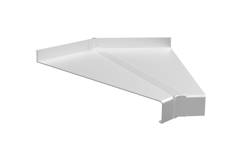 I 500 D/135 internal corner connector for secure connection of window sill butts on internal corners at an angle of 135°. Water tightness under heavy rain tested up to 1,950 Pa. Compensation of thermal length variation +3 mm/-3 mm. With a spring-based design, expansion compensation is +4 mm/-4 mm. Component of the BUG System 500 window sill system tested for water tightness under heavy rain. Material: aluminium and corner-vulcanised EPDM seal.