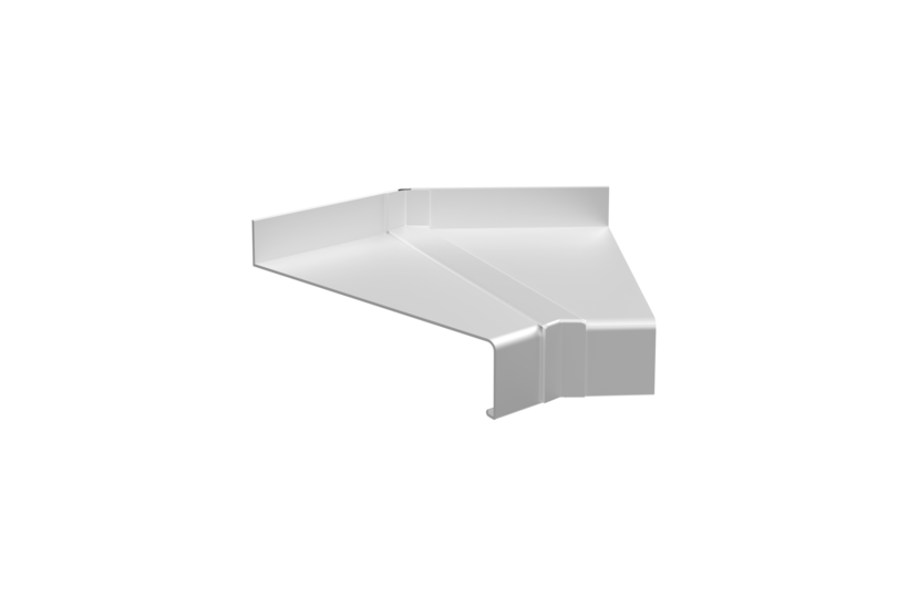 I 500 D/135 internal corner connector for secure connection of window sill butts on internal corners at an angle of 135°. Water tightness under heavy rain tested up to 1,950 Pa. Compensation of thermal length variation +3 mm/-3 mm. With a spring-based design, expansion compensation is +4 mm/-4 mm. Component of the BUG System 500 window sill system tested for water tightness under heavy rain. Material: aluminium and corner-vulcanised EPDM seal.