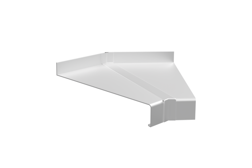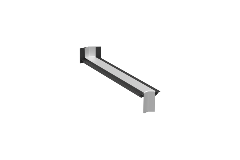 I 500 D/135 internal corner connector for secure connection of window sill butts on internal corners at an angle of 135°. Water tightness under heavy rain tested up to 1,950 Pa. Compensation of thermal length variation +3 mm/-3 mm. With a spring-based design, expansion compensation is +4 mm/-4 mm. Component of the BUG System 500 window sill system tested for water tightness under heavy rain. Material: aluminium and corner-vulcanised EPDM seal.