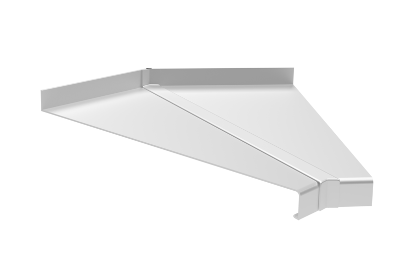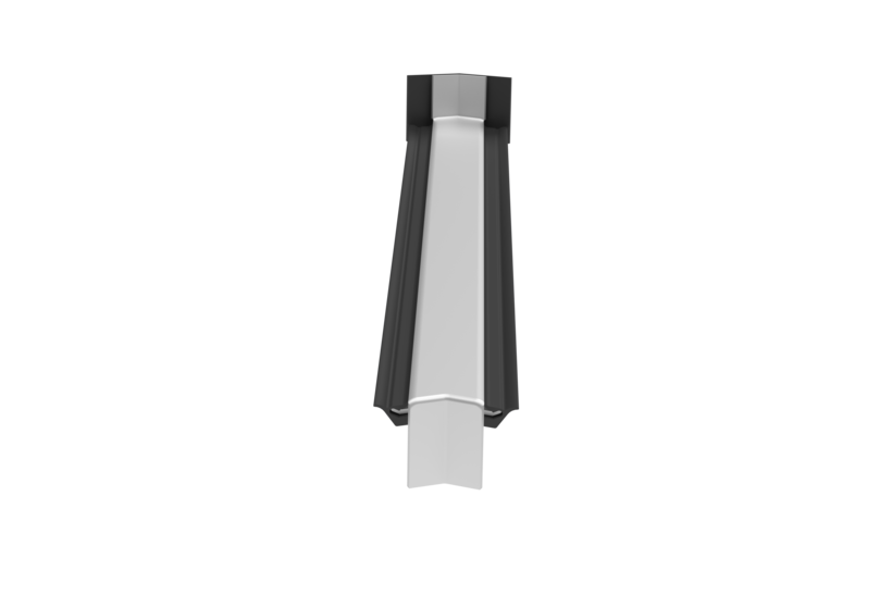 I 500 D/135 internal corner connector for secure connection of window sill butts on internal corners at an angle of 135°. Water tightness under heavy rain tested up to 1,950 Pa. Compensation of thermal length variation +3 mm/-3 mm. With a spring-based design, expansion compensation is +4 mm/-4 mm. Component of the BUG System 500 window sill system tested for water tightness under heavy rain. Material: aluminium and corner-vulcanised EPDM seal.